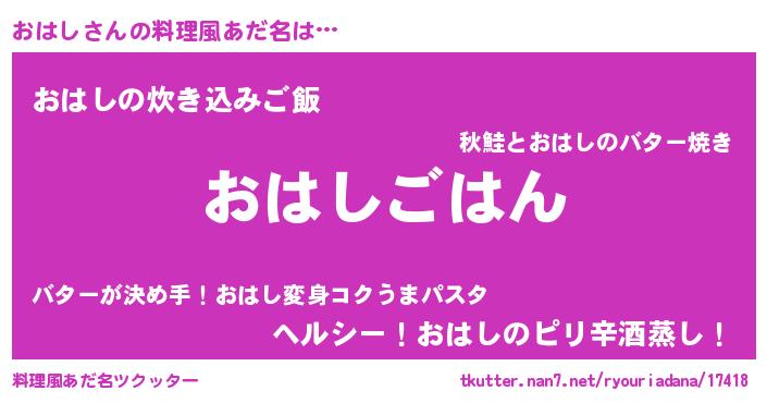 | 欧米人風あだ名 | 『トリンドルおはし』『ダニエルおはし』 |