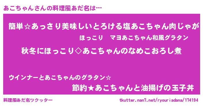 | 意味不明あだ名 | 『永久保存あこちゃん』 |