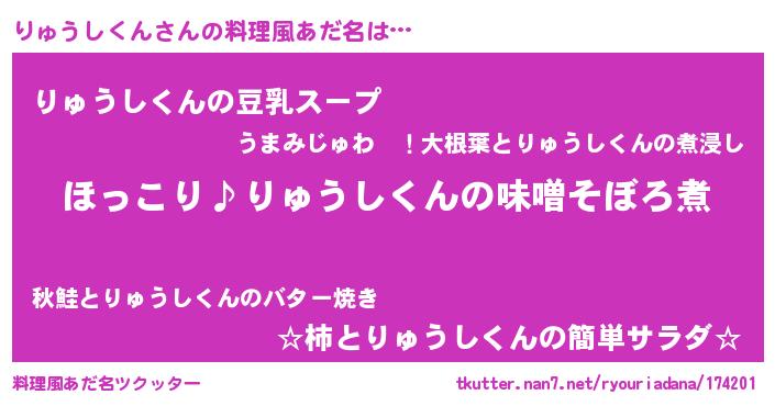 | 女子向けラノベタイトル風あだ名 | 『(仮)りゅうしくんのやんごとなき事情』 |