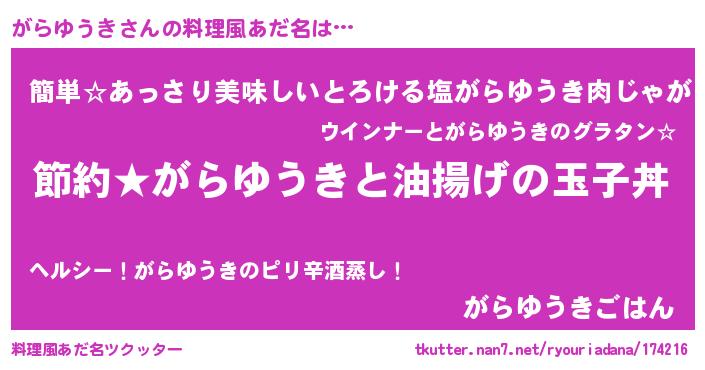 | 胡散臭い通販商品みたいなあだ名 | 『モテモテ間違いなし水晶球…その名も「がらゆうき」』 |