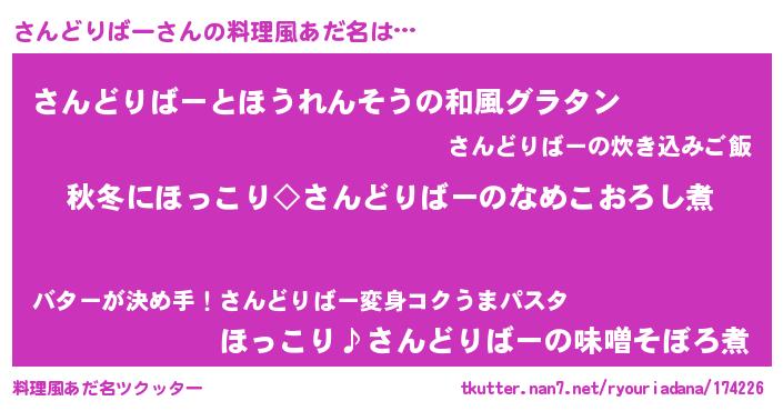 | ヘコむあだ名 | 『さんにゅー』『さんどりばー(笑)』 |