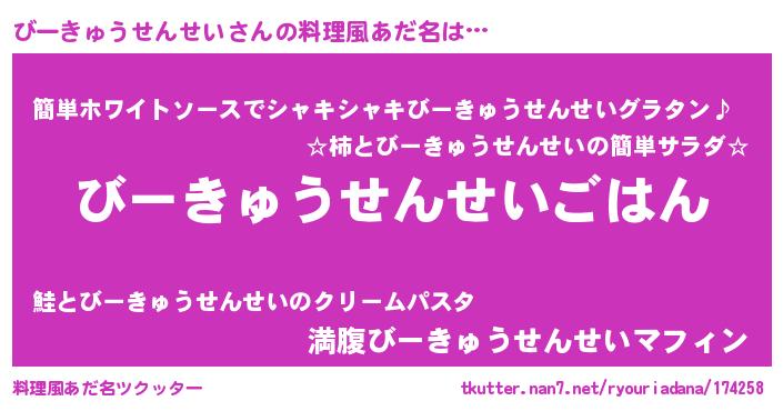 | ヘコむあだ名 | 『びーっちょ』『びーきゅうせんせい(笑)』 |