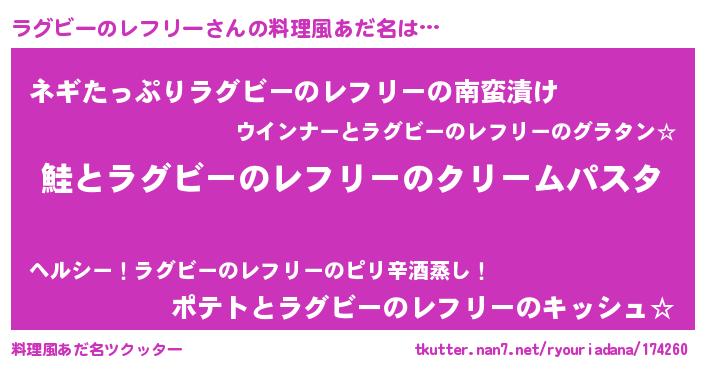 | 自動車の名前っぽいあだ名 | 『ランR』『ラグティマ』『ラント』 |