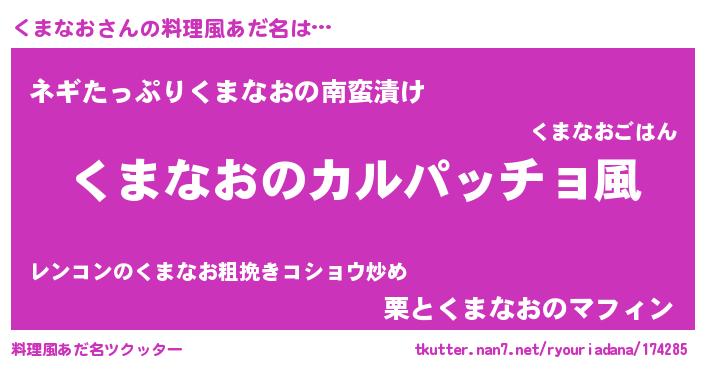 | 男性向けラノベタイトル風あだ名 | 『魔弾の王とくまなお』 |