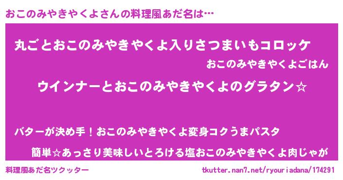 | 欧米人風あだ名 | 『おこのみやきやくよクリステル』 |