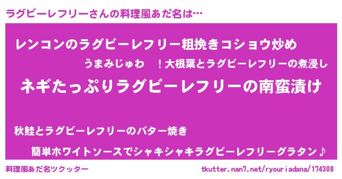 | ヘコむあだ名 | 『ラグふぇ~』『ラグっちょ』 |