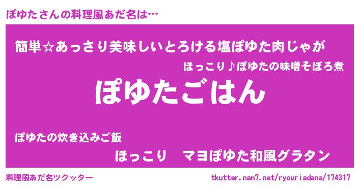 | 男性向けラノベタイトル風あだ名 | 『ポユタスレイヤー』『ぽゆたの憂鬱』 |