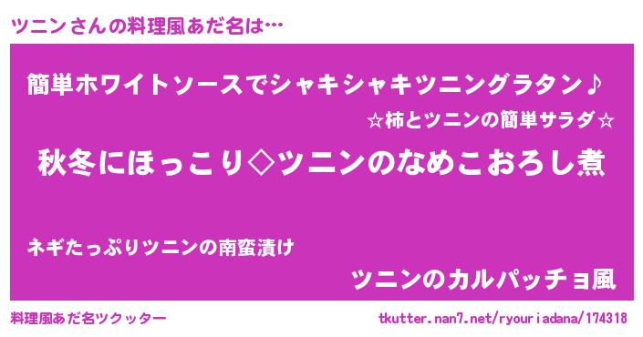 | 胡散臭い通販商品みたいなあだ名 | 『伝統あるサプリメント…その名も「ツニン」』 |