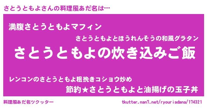 | 意味不明あだ名 | 『永久保存さとうともよ』 |