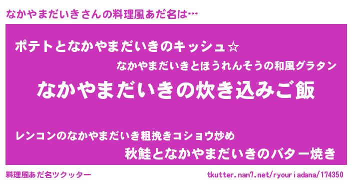 | 欧米人風あだ名 | 『なかやまだいき・ステッグマイヤー』 |