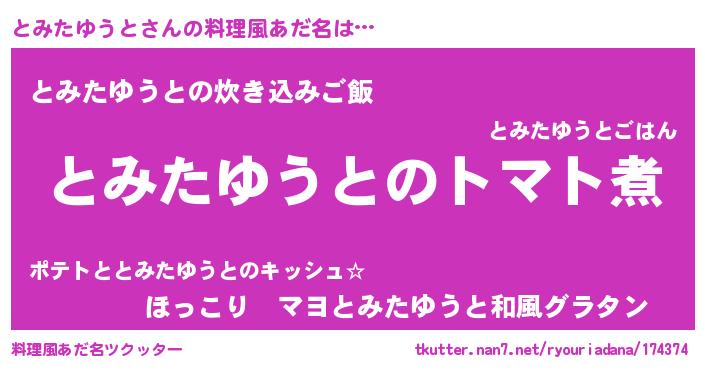 | 男性向けラノベタイトル風あだ名 | 『おまえをオタクにしてやるから、俺をとみたゆうとにしてくれ! 』 |