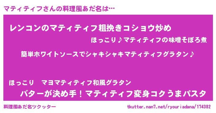 | 男性向けラノベタイトル風あだ名 | 『マティティフの嫁は女の子じゃないと思った?』 |