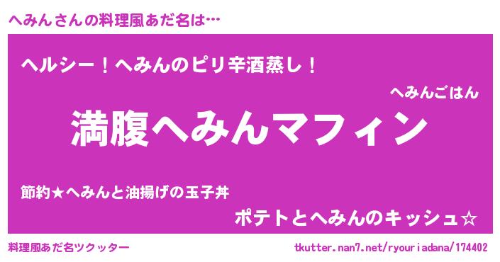 | 意味不明あだ名 | 『永久保存へみん』『自称へみん』 |