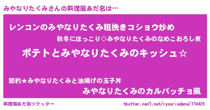 | 意味不明あだ名 | 『とにかく怪しいみやなりたくみ』 |