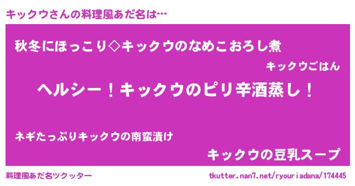 | 女子向けラノベタイトル風あだ名 | 『闇のキックウ』『キックウは平凡を望む』 |