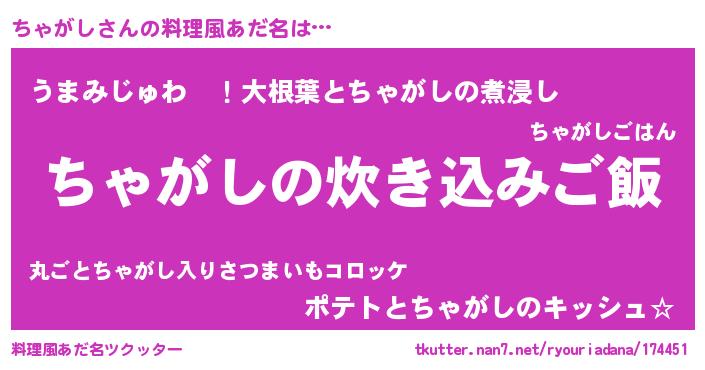 | 胡散臭い通販商品みたいなあだ名 | 『運命の人と巡り会える高級そうな壺…その名も「ちゃがし」』 |