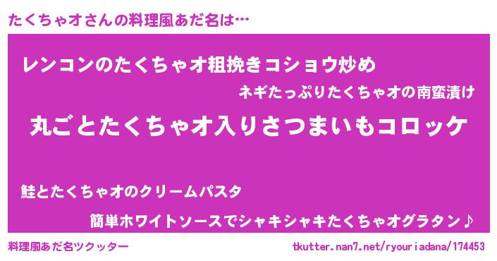 | 意味不明あだ名 | 『住所不定無職たくちゃオ(81歳)』 |