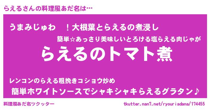 | ピコ太郎風あだ名 | 『ララ太郎』『ピラ一郎』『ラエ五郎』 |