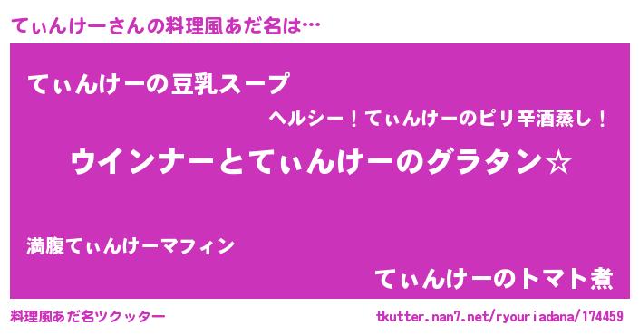 | ヘコむあだ名 | 『なまこ酢』『てぃを』『てぃにー』 |