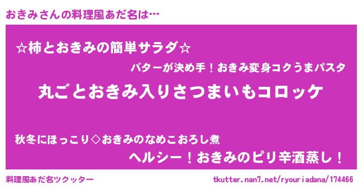 | 男性向けラノベタイトル風あだ名 | 『この素晴らしい世界におきみを!』 |
