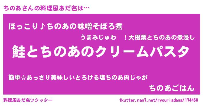 | 女子向けラノベタイトル風あだ名 | 『死神ちのあの再婚』『ちのあの婚約者』 |
