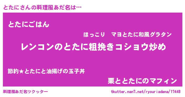 | 胡散臭い通販商品みたいなあだ名 | 『テレビで話題の高麗人参…その名も「とたに」』 |