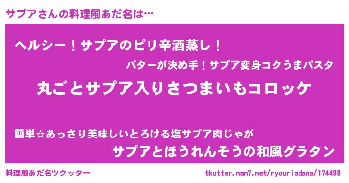 | 男性向けラノベタイトル風あだ名 | 『この素晴らしい世界にサプアを!』 |