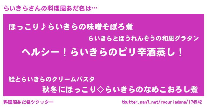 | ヘコむあだ名 | 『らいにゅー』『らいきら(小並感)』 |