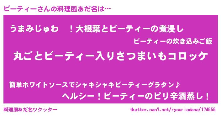 | 恥ずかしいあだ名 | 『ビーっちょ』『ビーティーデラックス』 |