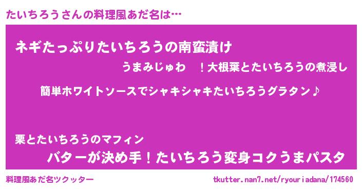 | 男性向けラノベタイトル風あだ名 | 『たいちろうの嫁は女の子じゃないと思った?』 |