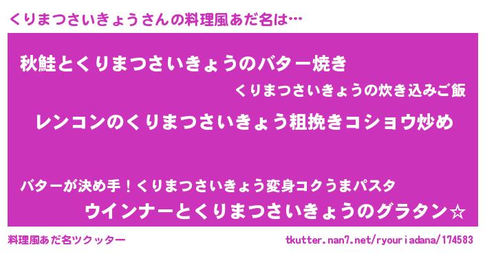 | 欧米人風あだ名 | 『ケンブリッジくりまつさいきょう』 |