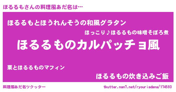 | 女子向けラノベタイトル風あだ名 | 『ほるるもが死なない童話 林檎のほるるもの診療簿』 |