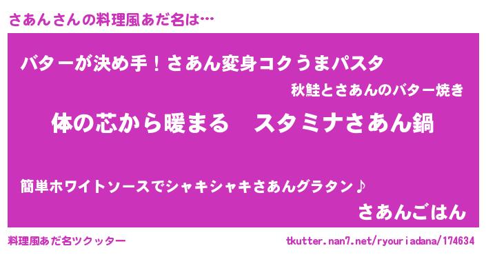 | 女子向けラノベタイトル風あだ名 | 『さあんの雑貨屋さん』『さあん恋絵巻』 |