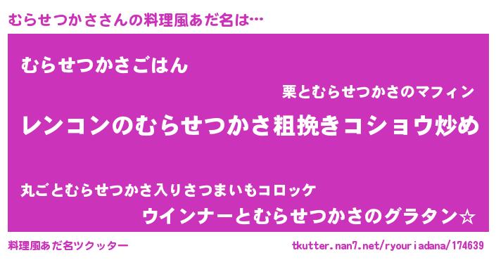 | 意味不明あだ名 | 『自称むらせつかさ』 |