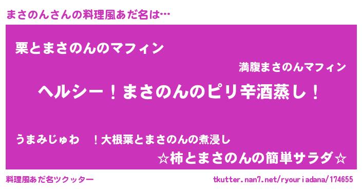| 男性向けラノベタイトル風あだ名 | 『Re:まさのんから始める異世界生活』 |