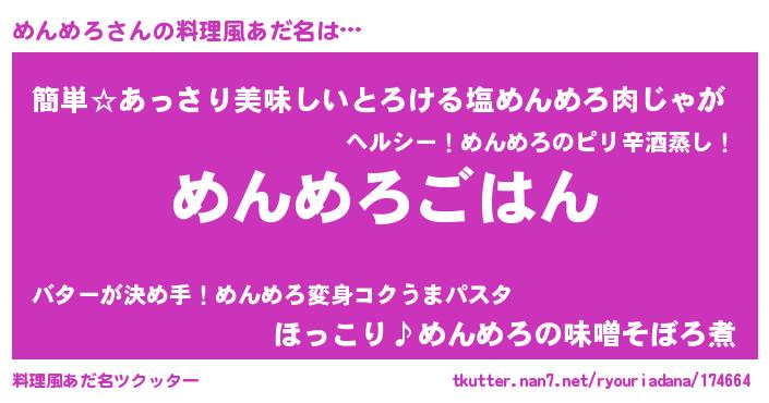 | 胡散臭い通販商品みたいなあだ名 | 『絶対に幸福をもたらす健康食品…その名も「めんめろ」』 |