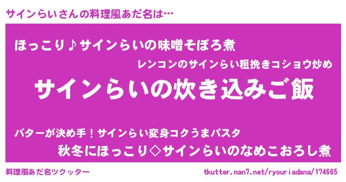 | 意味不明あだ名 | 『ペロリンサインらい』『自称サインらい』 |