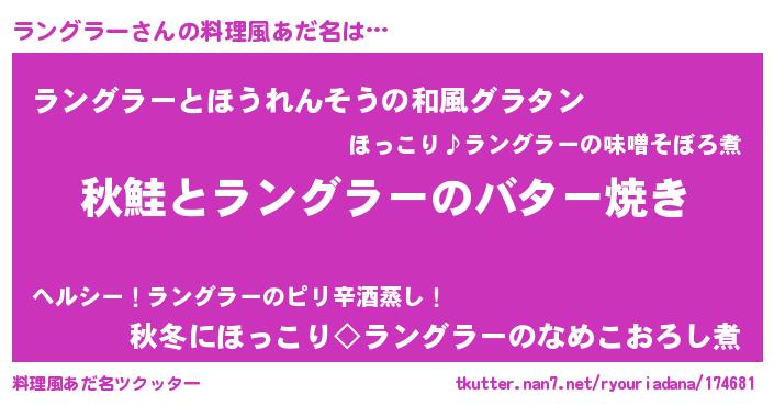 | ヘコむあだ名 | 『ラングラー(笑)』『ランにゅー』 |