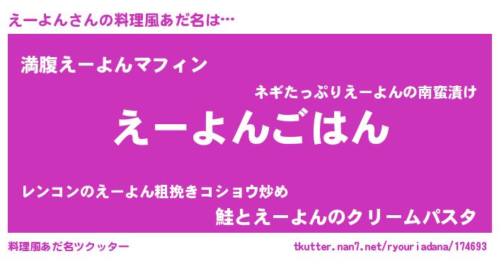 | 意味不明あだ名 | 『たけのこ科えーよん属』『自称えーよん』 |