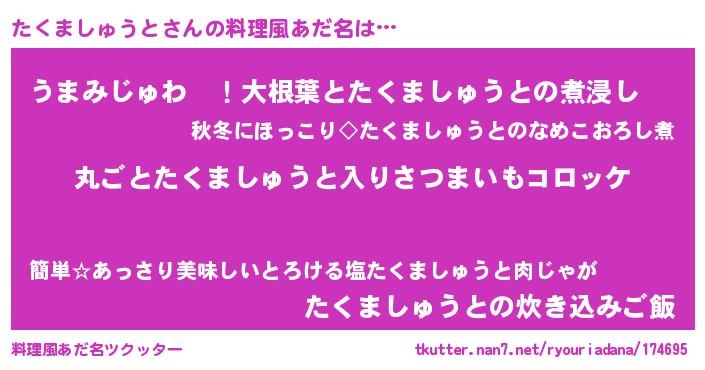 | 意味不明あだ名 | 『住所不定無職たくましゅうと(77歳)』 |