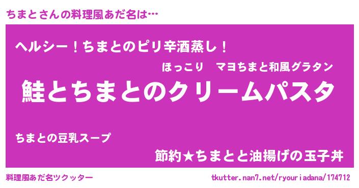 | ヒーロー風カッコイイあだ名 | 『慈愛の使者ちまと』『最強戦士チマト』 |