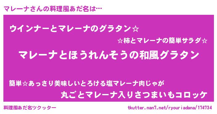 | 意味不明あだ名 | 『もやし科マレーナ属』『自称マレーナ』 |