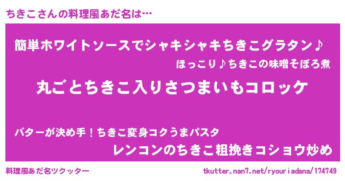 | 男性向けラノベタイトル風あだ名 | 『魔弾の王とちきこ』『ちきこの憂鬱』 |