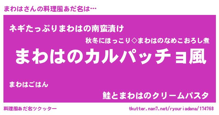 | ヘコむあだ名 | 『まわふぇ~』『まわは(小並感)』 |