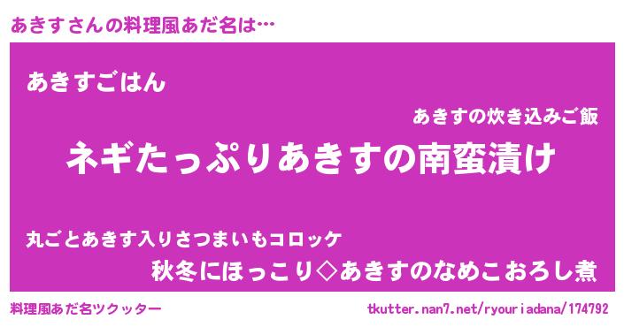 | 意味不明あだ名 | 『ペロリンあきす』『たけのこ科あきす属』 |