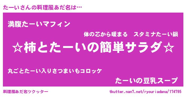| ヘコむあだ名 | 『たーい(爆)』『たーを』『牛乳』 |