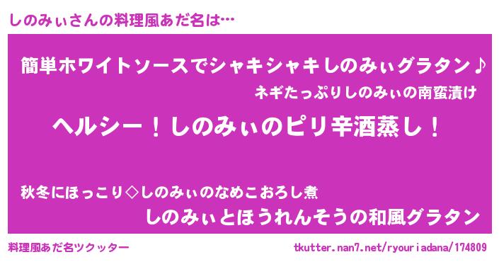 | 意味不明あだ名 | 『自称しのみぃ』『もやし科しのみぃ属』 |