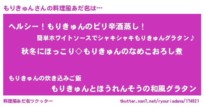 | 意味不明あだ名 | 『自称もりきゅん』『ニラ科もりきゅん属』 |