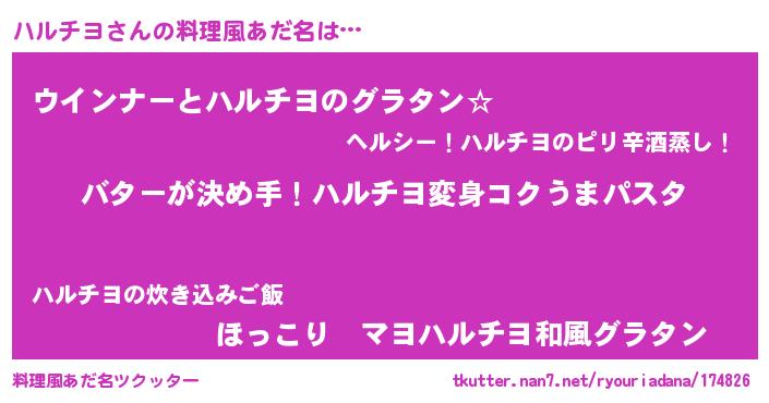 | 女子向けラノベタイトル風あだ名 | 『ハルチヨ恋絵巻』『ハルチヨ伯爵の花嫁』 |