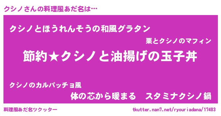| 男性向けラノベタイトル風あだ名 | 『クシノアートオンライン』 |